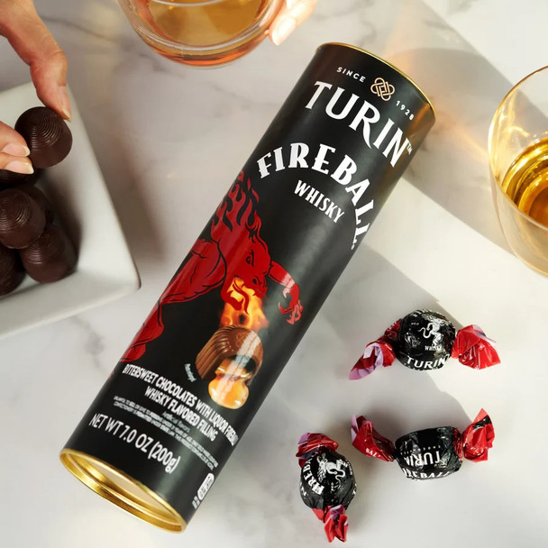 What you have here is Fireball's distinctive Cinnamon flavor combined with a delicious Dark Chocolate Truffle! Turin® Fireball is a smooth and creamy premium chocolate, filled with the bold Fireball taste you love. Enjoy these chocolates on their own or pair with a shot of Fireball Whisky for a Red Hot Kick. Go ahead and unleash the dragon... responsibly!