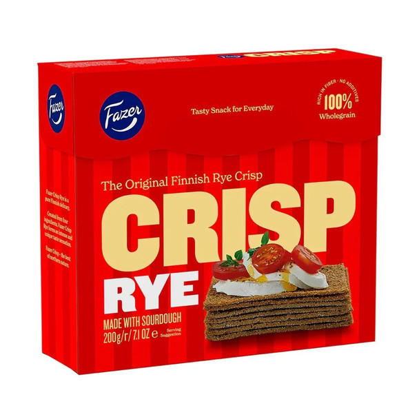 Fazer Crisp products are crafted from sourdough, rich in fiber, and made from 100% wholegrain for a satisfying yet healthy everyday snack. The Fazer Rye Sourdough Crisp is made from just four ingredients to create an intense and unique rye flavor. This Finnish delicacy will be delicious as is, but will also pair perfectly with a cheese and meat platter, soups and salads, your favorite spread, and more!