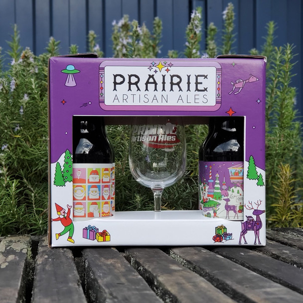 Amazing Prairie Artisan Christmas Gift pack with 2 x Christmas Bomb and 2 x Barrel Aged Christmas Bomb and the perfect Santa Glass to serve it in. This is an excellent gift for your favorite stout lover!