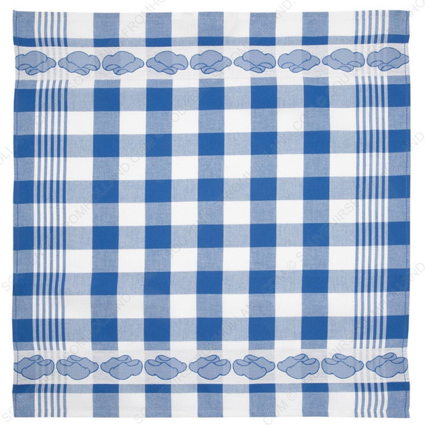 Good quality Dutch Tea Towel Twentse Damast with checkered blue wooden shoe pattern. Made by Twentse Damast, makers of quality textiles since 1813!